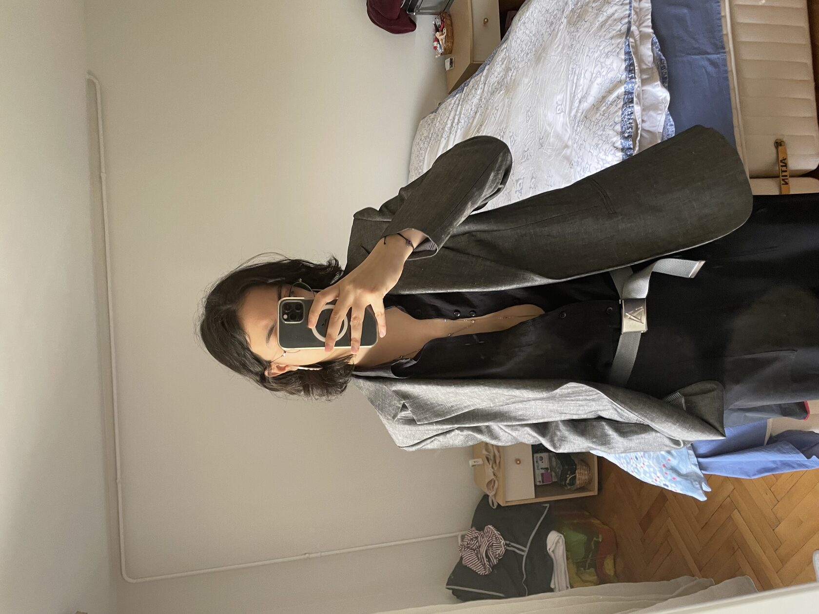 During the pandemic, I became obsessed with the idea of finding who I was. I kept looking for different outfits and different styles to rediscover my identity. Things took a harsh turn at a certain point as I started questioning my gender, I even bought myself a binder and started taking am I trans quizzes online. I remember hiding that binder from my mom religiously as I was deathly afraid of what would happen if anyone found out that I was doing shit like this. I would only wear my binder when everyone in the house was asleep and I would look forward to wearing it every night and putting on an outfit. I would admire myself for 30 minutes and then take it off and fall asleep. I was confused, because it would feel right when I had the binder on but I was so deathly afraid of being trans so I pushed it down. Being trans never felt like a possibility for me, I knew no one in my family would understand and I didn’t want them to carry the burden of having a freak like me as their child. I was already gay and was successfully hiding it from them but being trans was not something I could hide as easily, so I wasn’t trans, I couldn’t be trans. My clothes at this point started to feel too feminine for me, it was just oversized shirts with shorts or pants. The way clothes looked on men started making me feel jealous more and more.